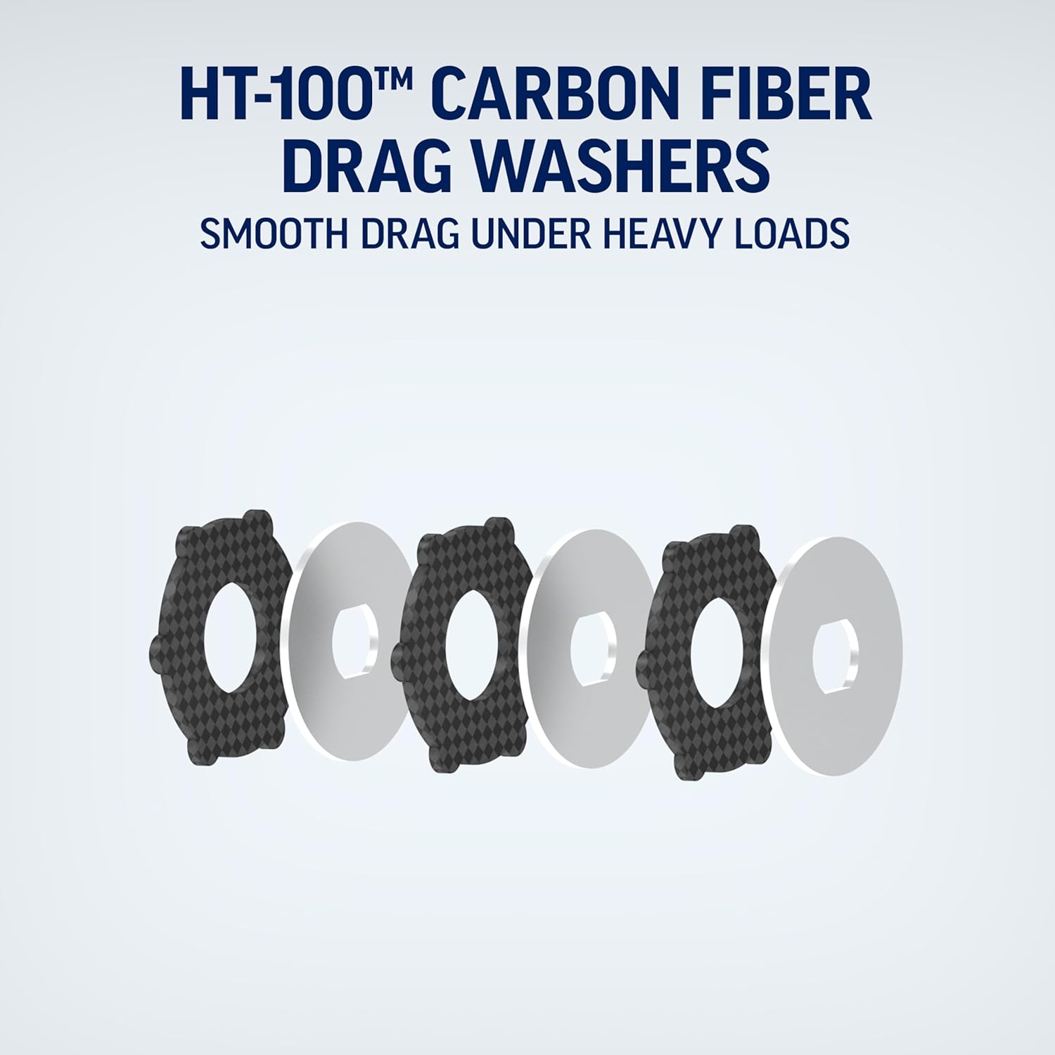 Crafted with a lightweight yet sturdy graphite body and rotor, the PENN Pursuit IV ensures long-lasting performance in both freshwater and saltwater conditions. Its powerful HT-100 carbon fiber drag system provides smooth and consistent drag pressure, giving you the control you need to battle even the toughest fish.